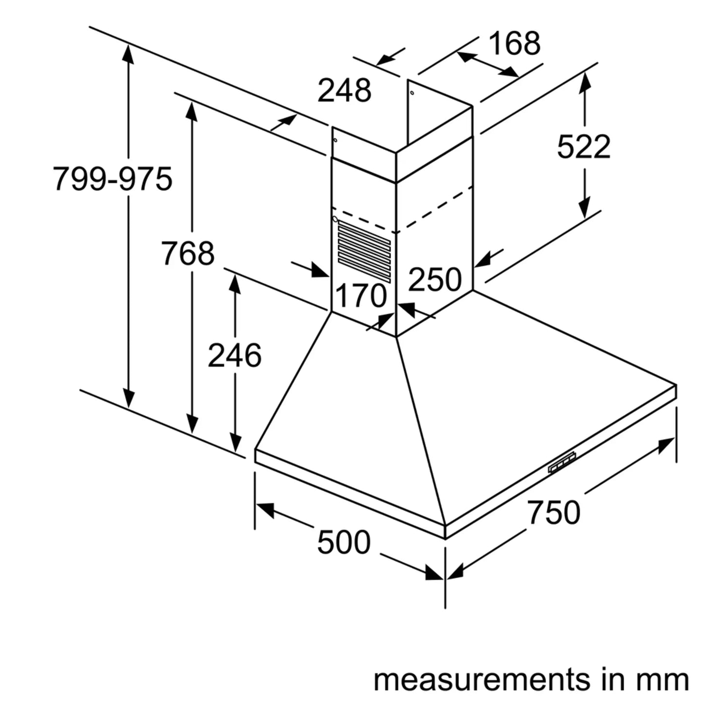 Product Dimensions (HxWxD) (mm) - 553-730 x 750 x 500