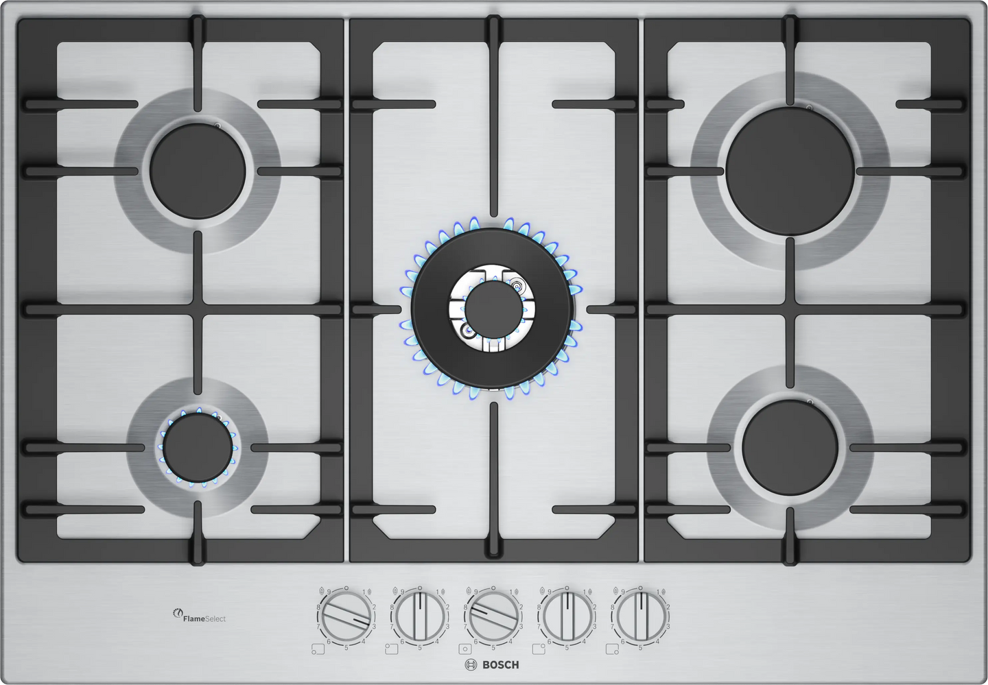 Bosch PCQ7A5I90 Series 6 5 Burner Gas Hob, Stainless Steel