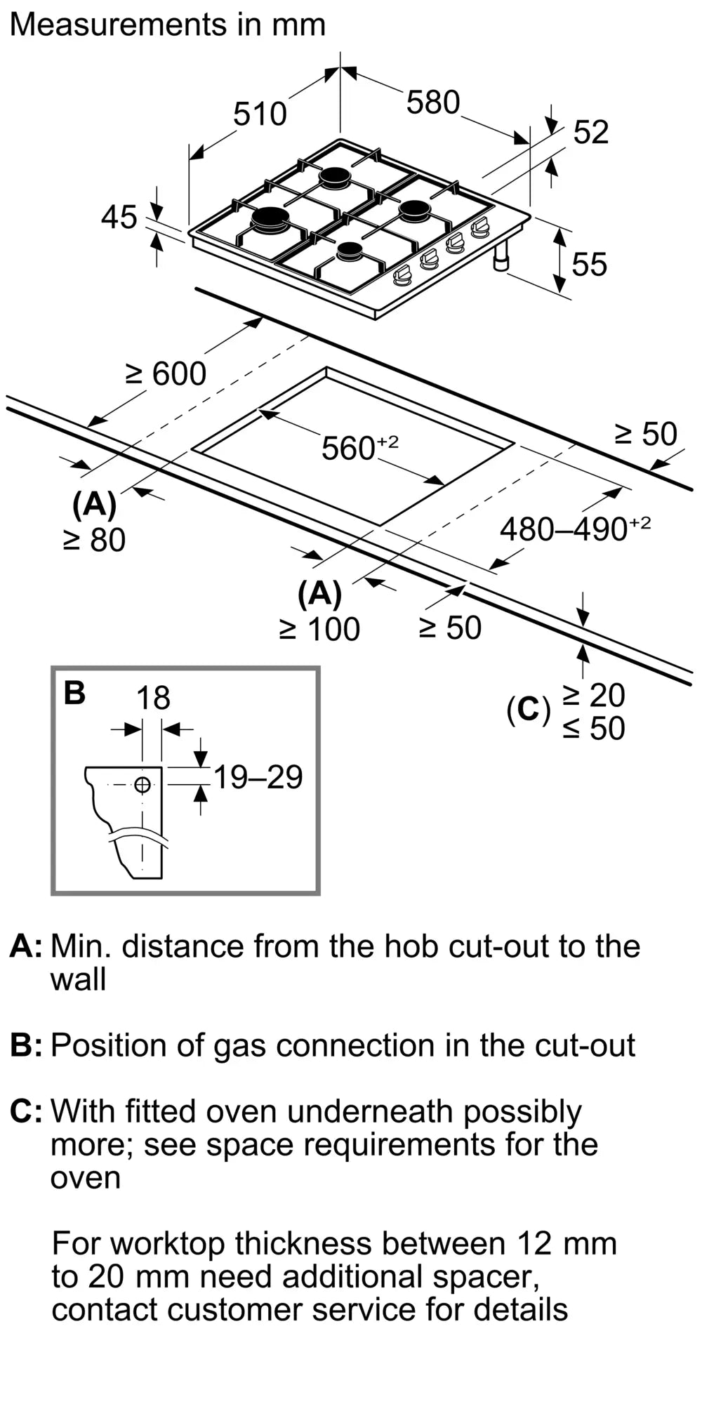 Product Dimensions (HxWxD) (mm) - 51.1 x 582 x 520