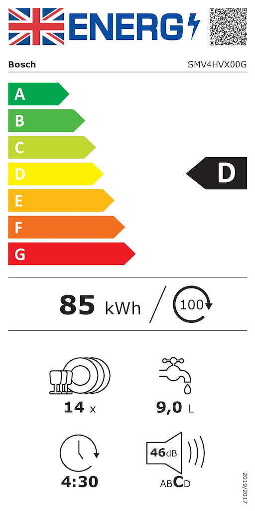- Energy² / Water³: 85 kWh / 9 litres