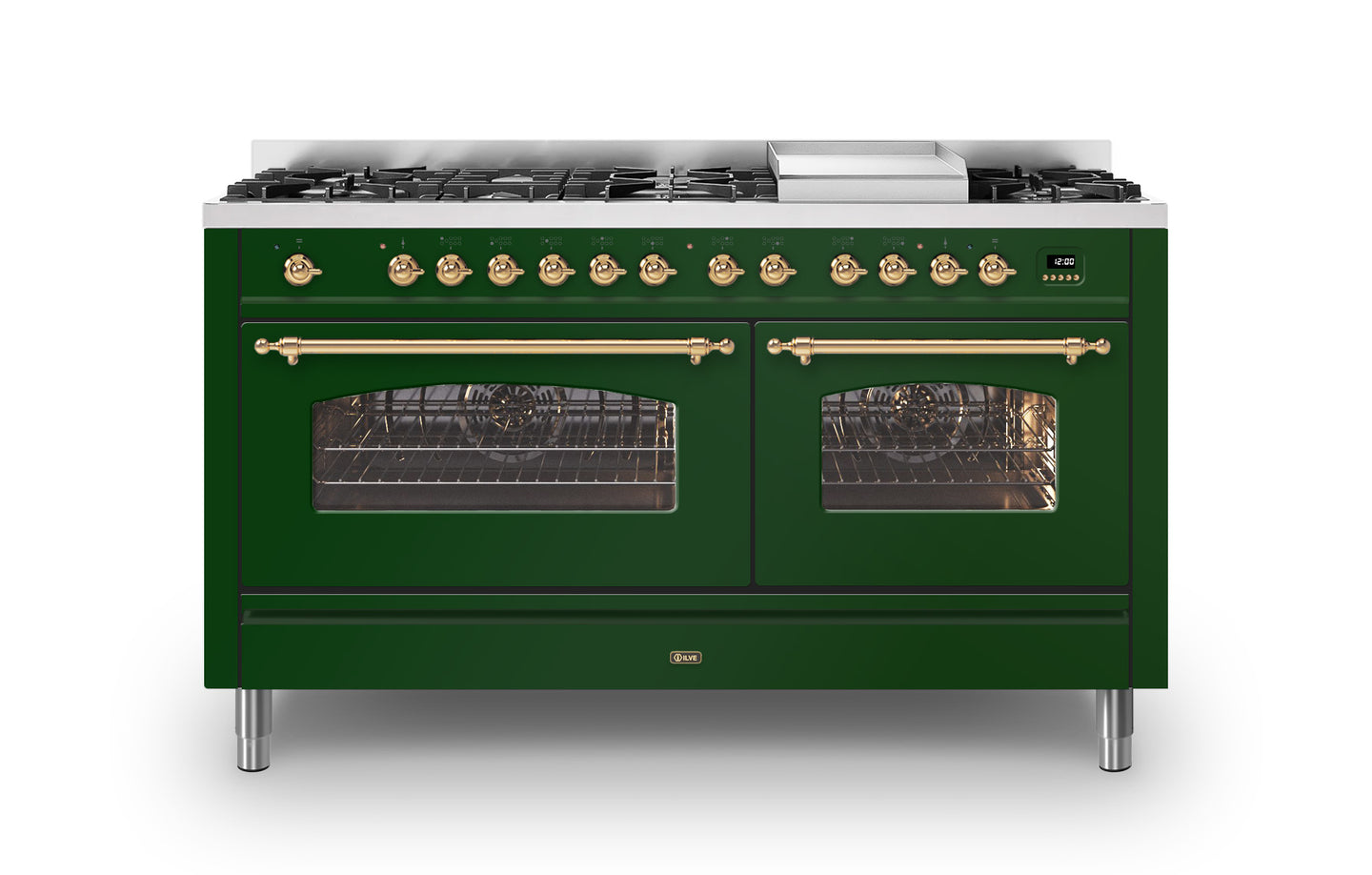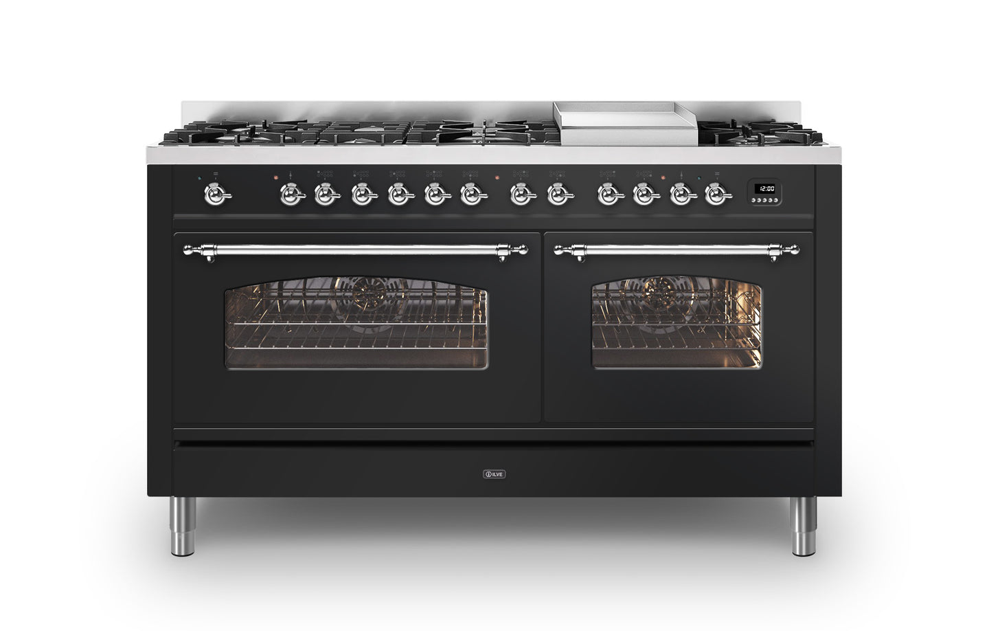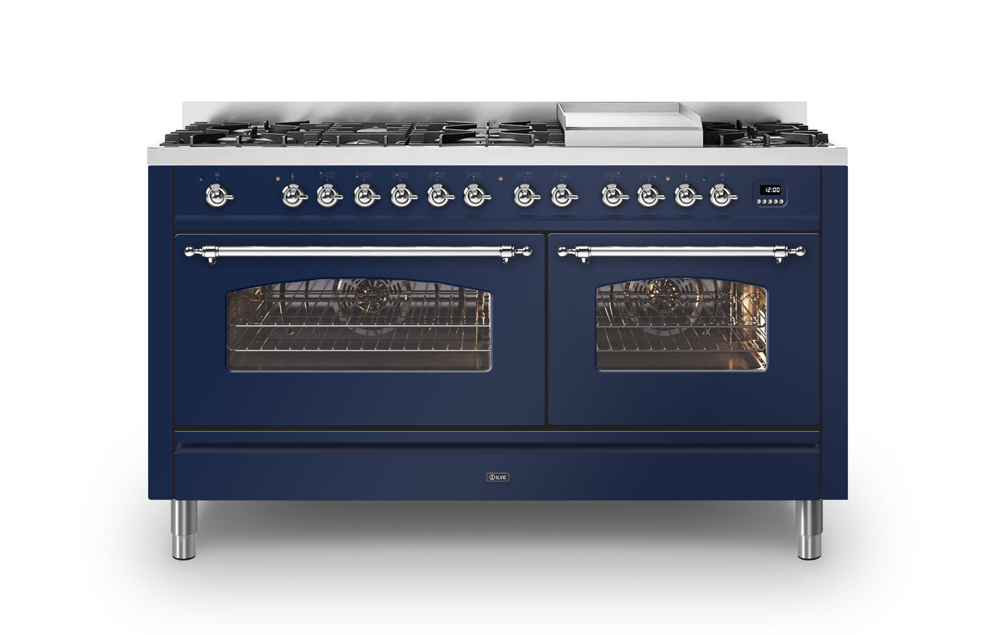 The 150 cm Milano range cooker is the perfect choice if you are looking for plenty of space to cook, whilst adding a beautiful Italian design to your kitchen. This Milano range cooker has two large electric ovens with triple glass cool doors. The ovens have a capacity of 65 and 97 litres – with more than enough space to cook your favourite dishes. With ILVE’s soft closing door system, both oven doors and storage doors can be closed gently.