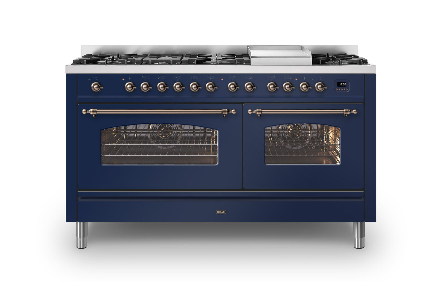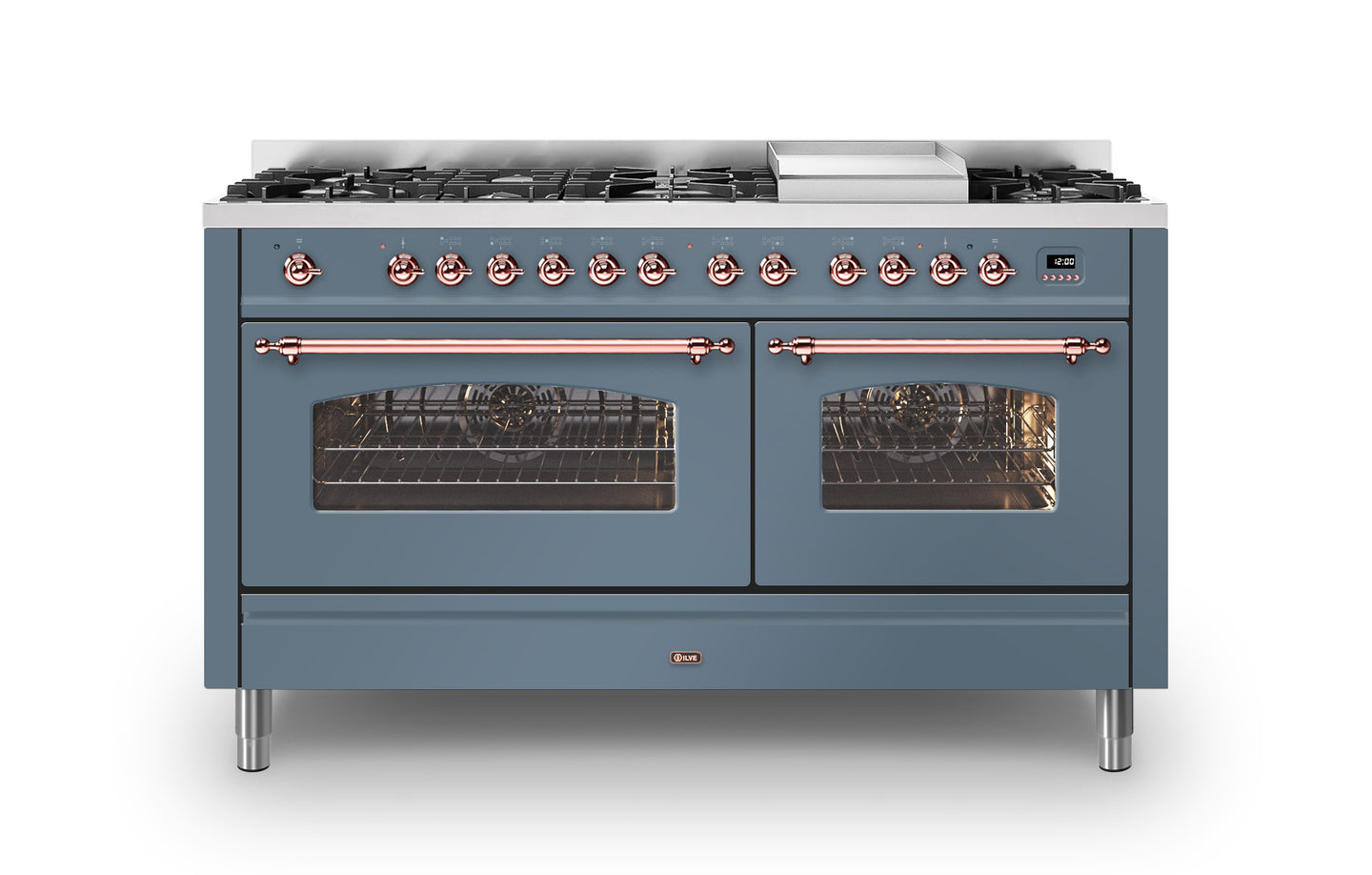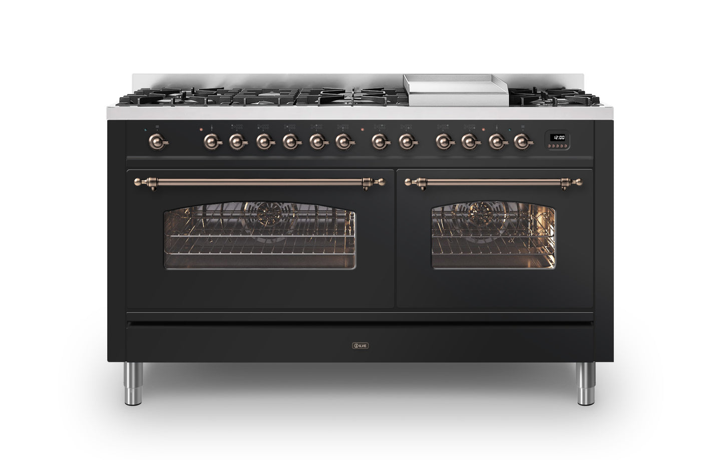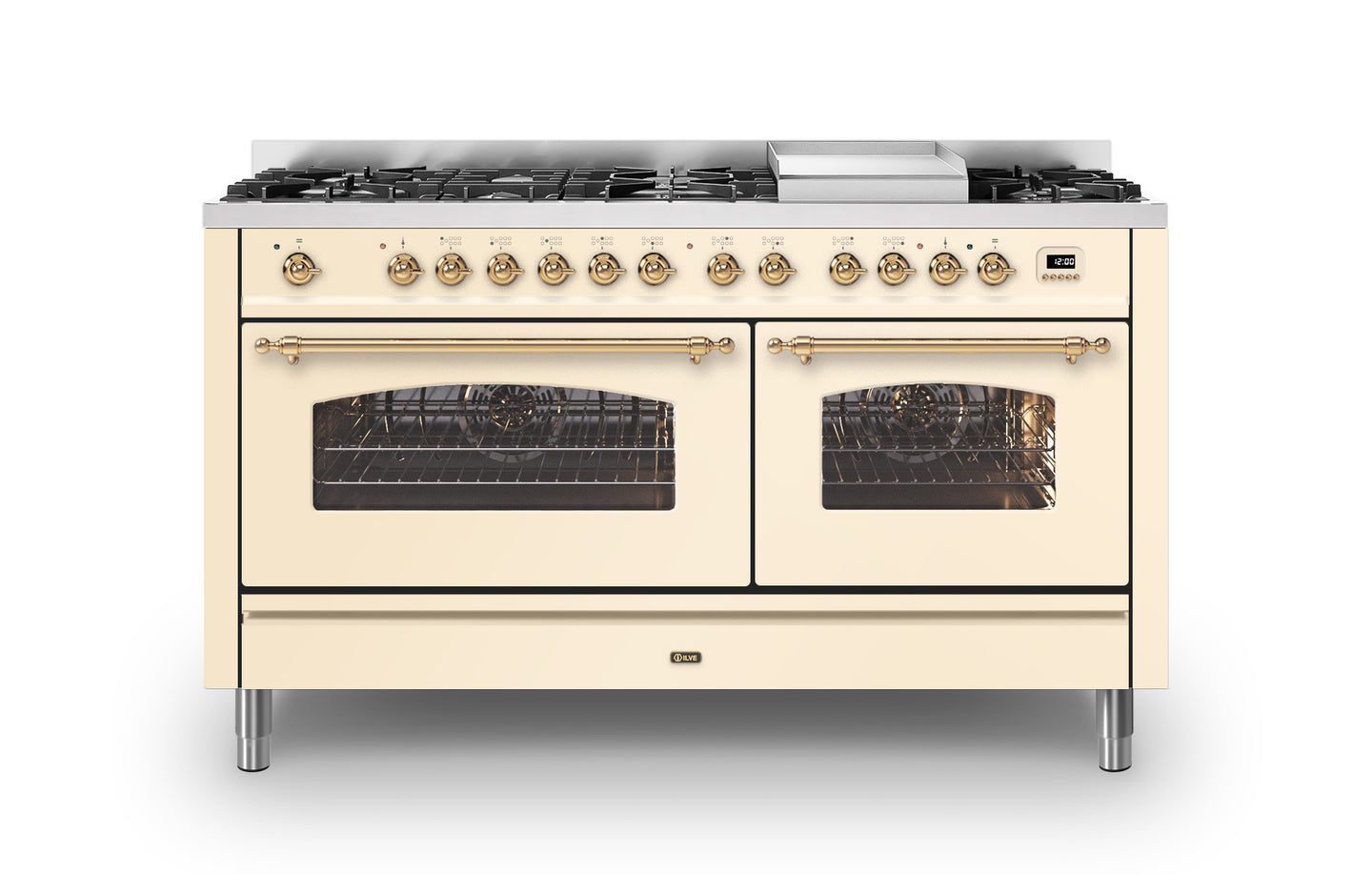The 150 cm Milano range cooker is the perfect choice if you are looking for plenty of space to cook, whilst adding a beautiful Italian design to your kitchen. This Milano range cooker has two large electric ovens with triple glass cool doors. The ovens have a capacity of 65 and 97 litres – with more than enough space to cook your favourite dishes. With ILVE’s soft closing door system, both oven doors and storage doors can be closed gently.