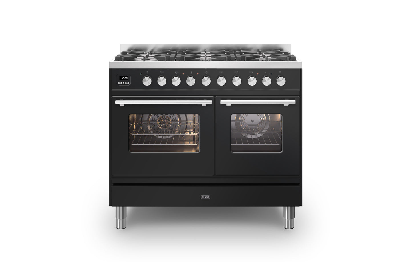 The 100 cm Roma range cooker has a contemporary design, perfect for any modern kitchen. This range cooker has two large ovens with a capacity of 56 and 65 litres. With ILVE’s soft closing door system, both oven doors and storage doors can be closed gently.