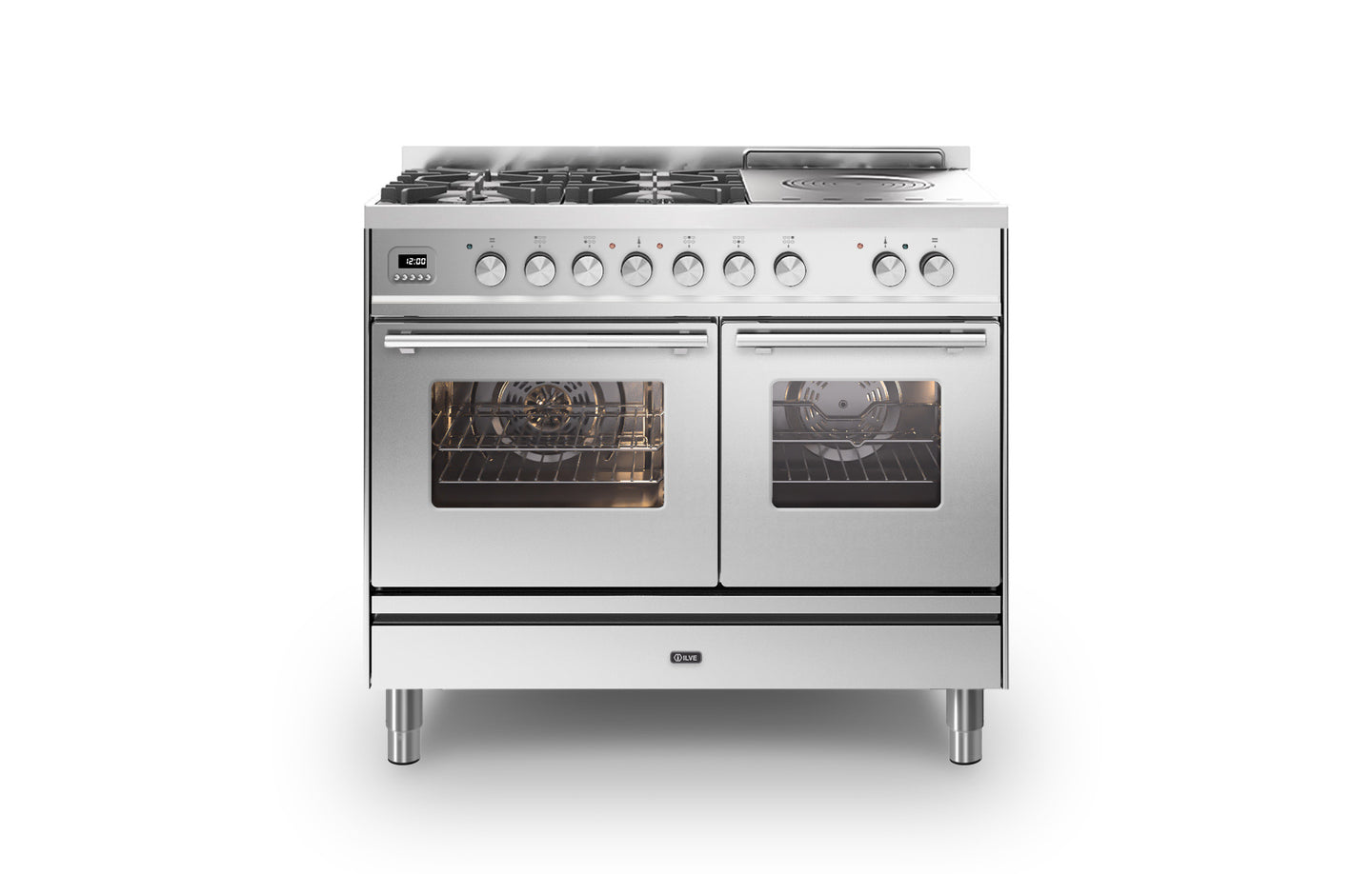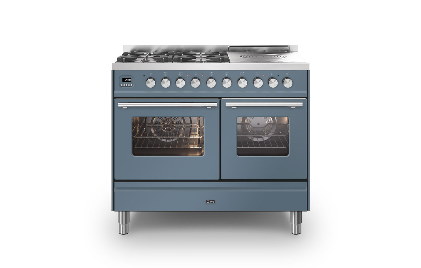 The 100 cm Roma range cooker has a contemporary design, perfect for any modern kitchen. This range cooker has two large ovens with a capacity of 56 and 65 litres. With ILVE’s soft closing door system, both oven doors and storage doors can be closed gently.