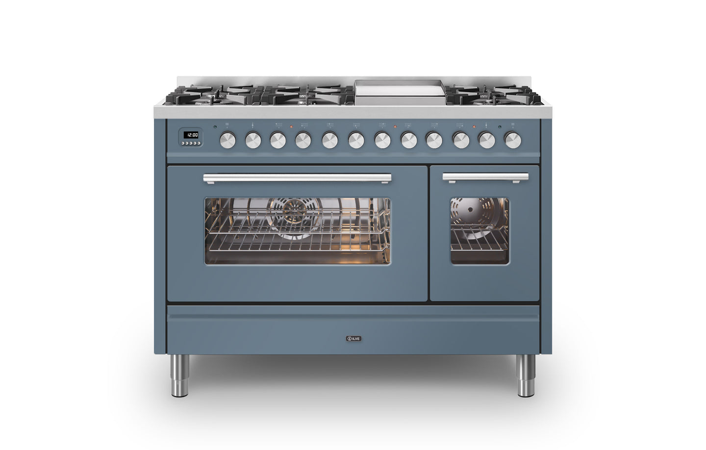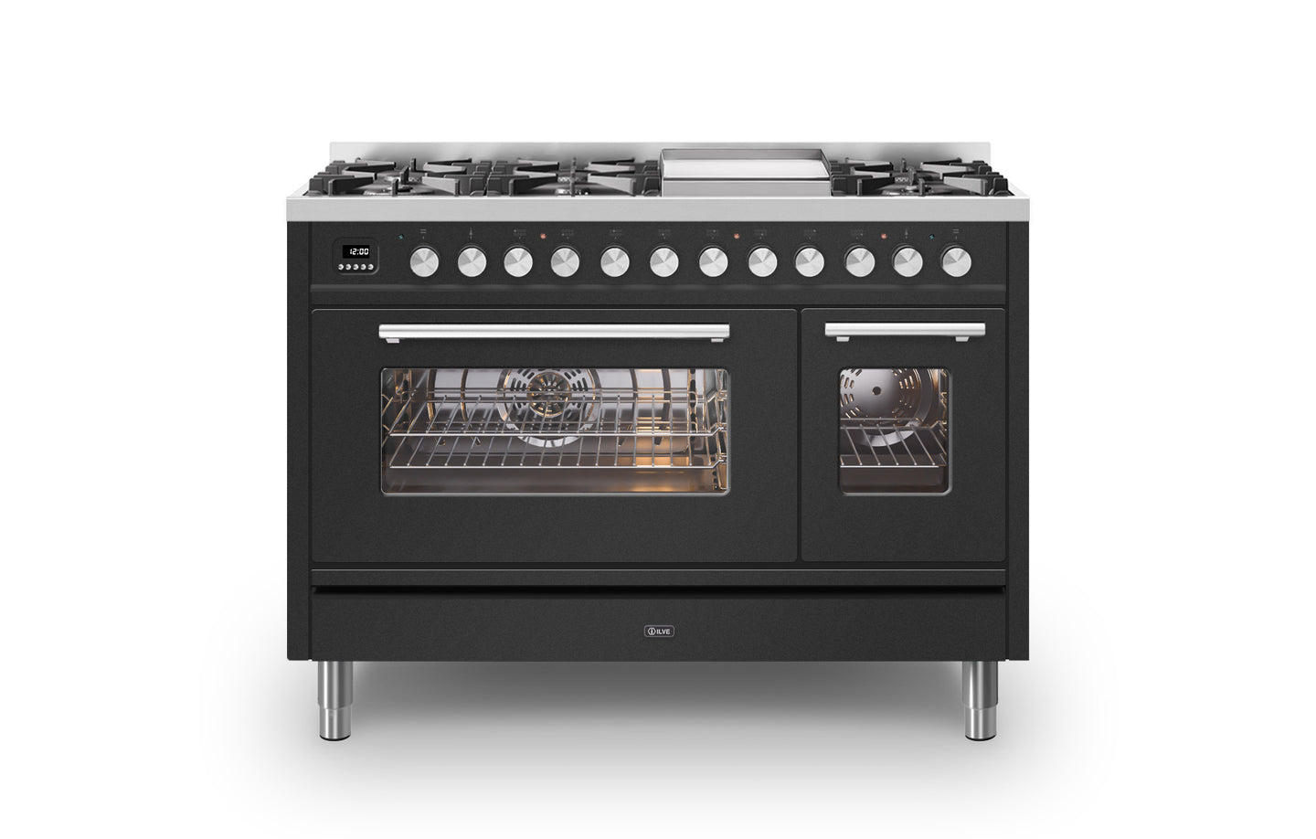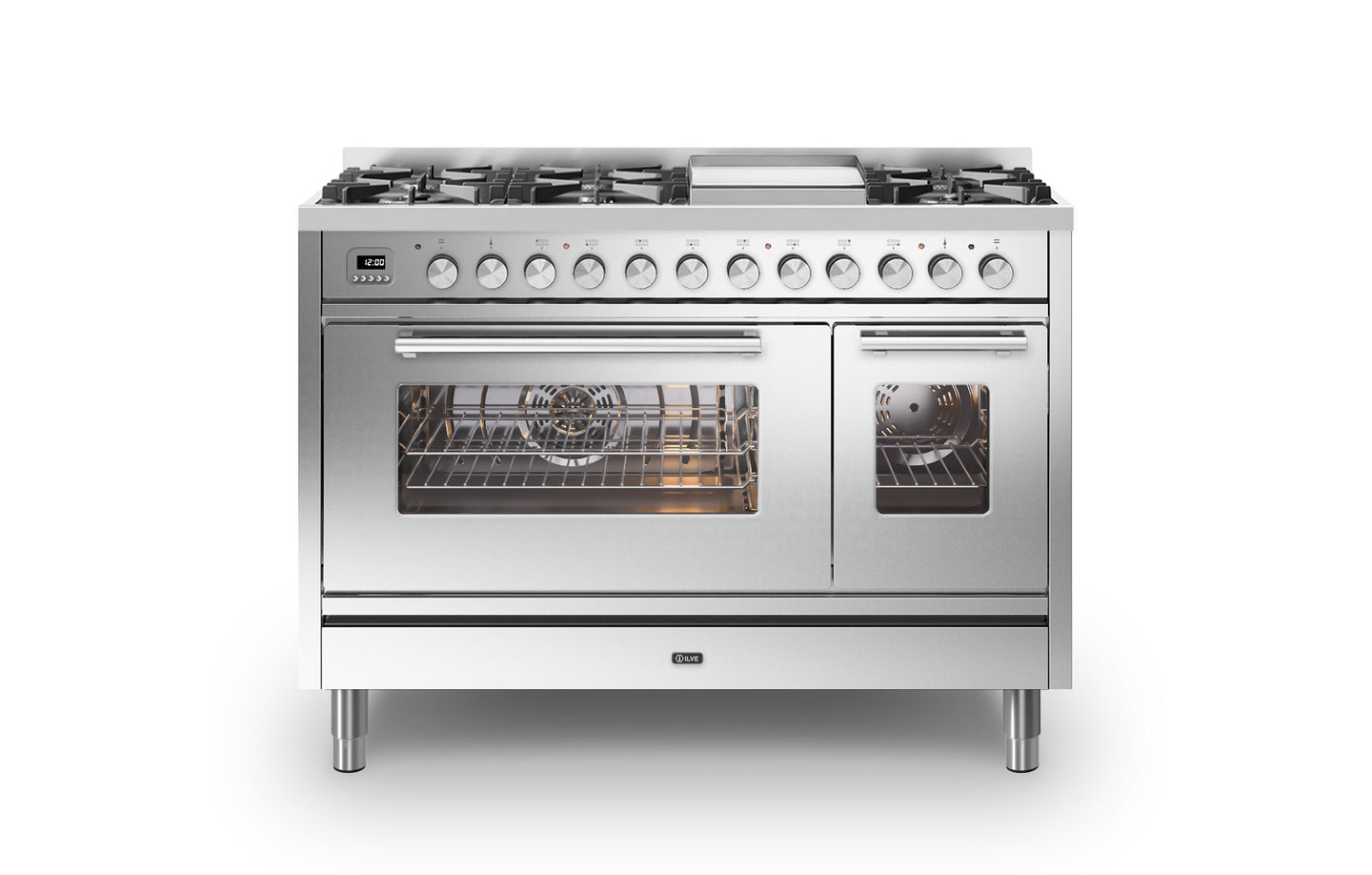The ovens temperature ranges from 30 to 300 degrees, and is controlled by ILVE’s unique E3 precision temperature control. This system allows you to chose the exact temperature on the screen, instead of guessing the temperature on the ovens knob. Both ovens include a specially designed rotisserie, perfect for cooking joints of meat. There is a choice of 15 oven functions including quick start rapid heat up that heats to 200 degrees in just 6 minutes.