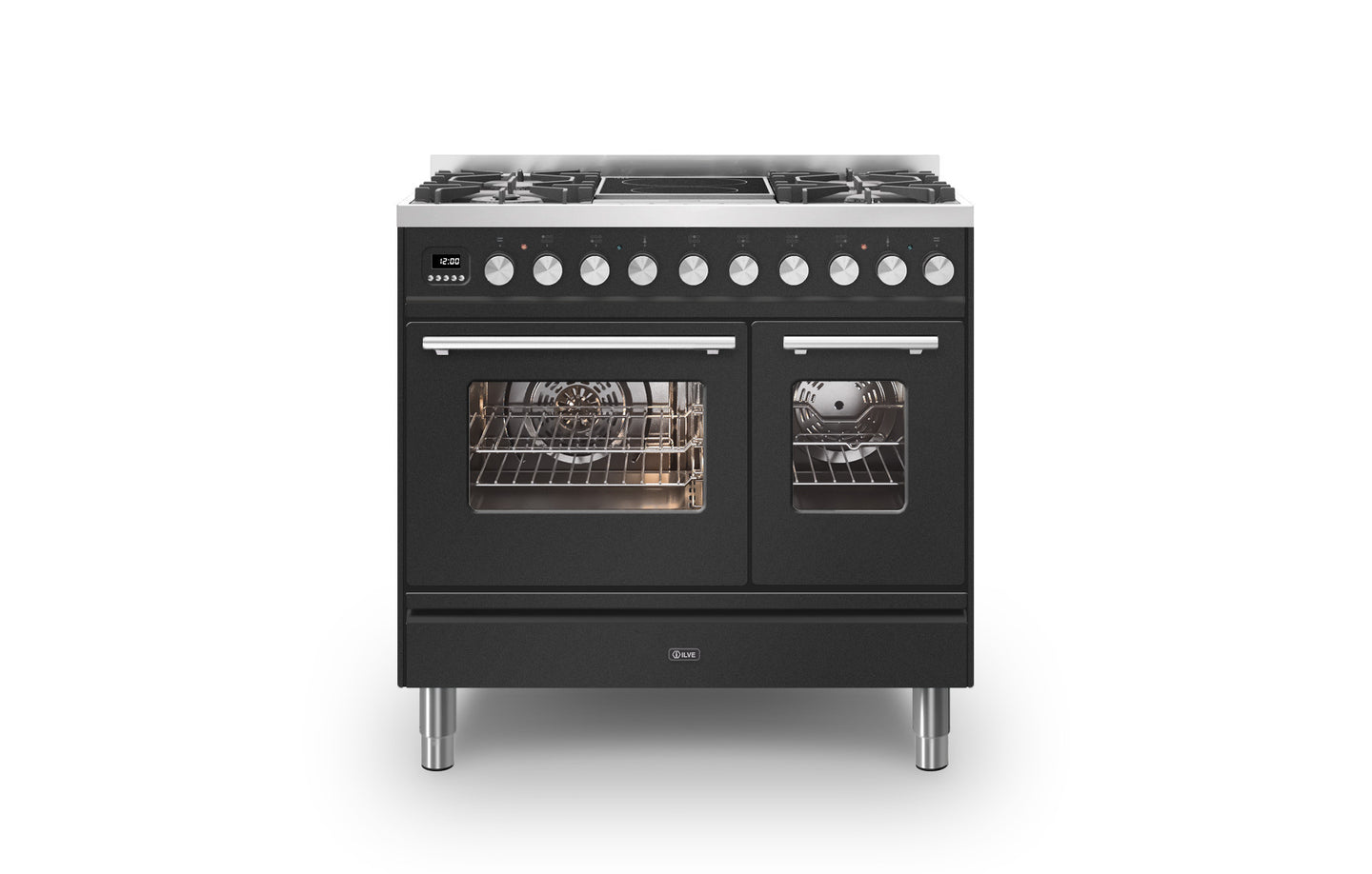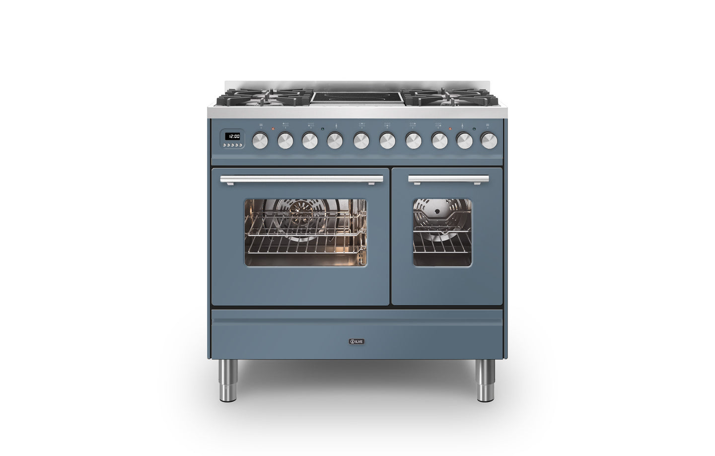 The 90 cm Roma range cooker has a contemporary design, perfect for any modern kitchen. This range cooker has two large ovens with a capacity of 43 and 65 litres. With ILVE’s soft closing door system, both oven doors and storage doors can be closed gently.