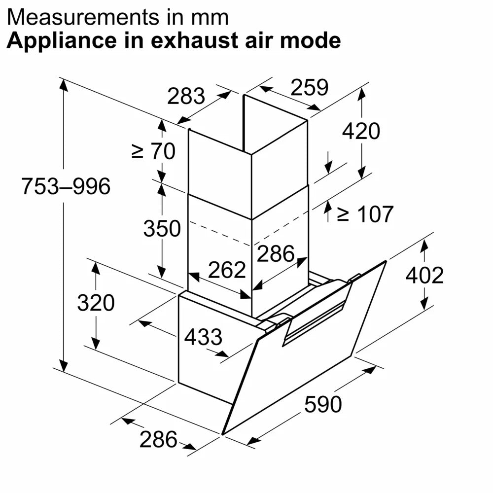 Product Dimensions (HxWxD) (mm) - 420-750 x 590 x 433